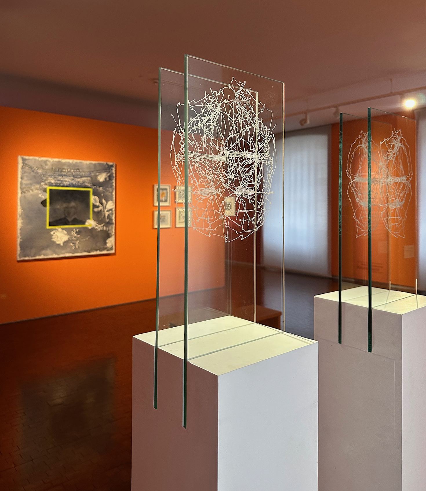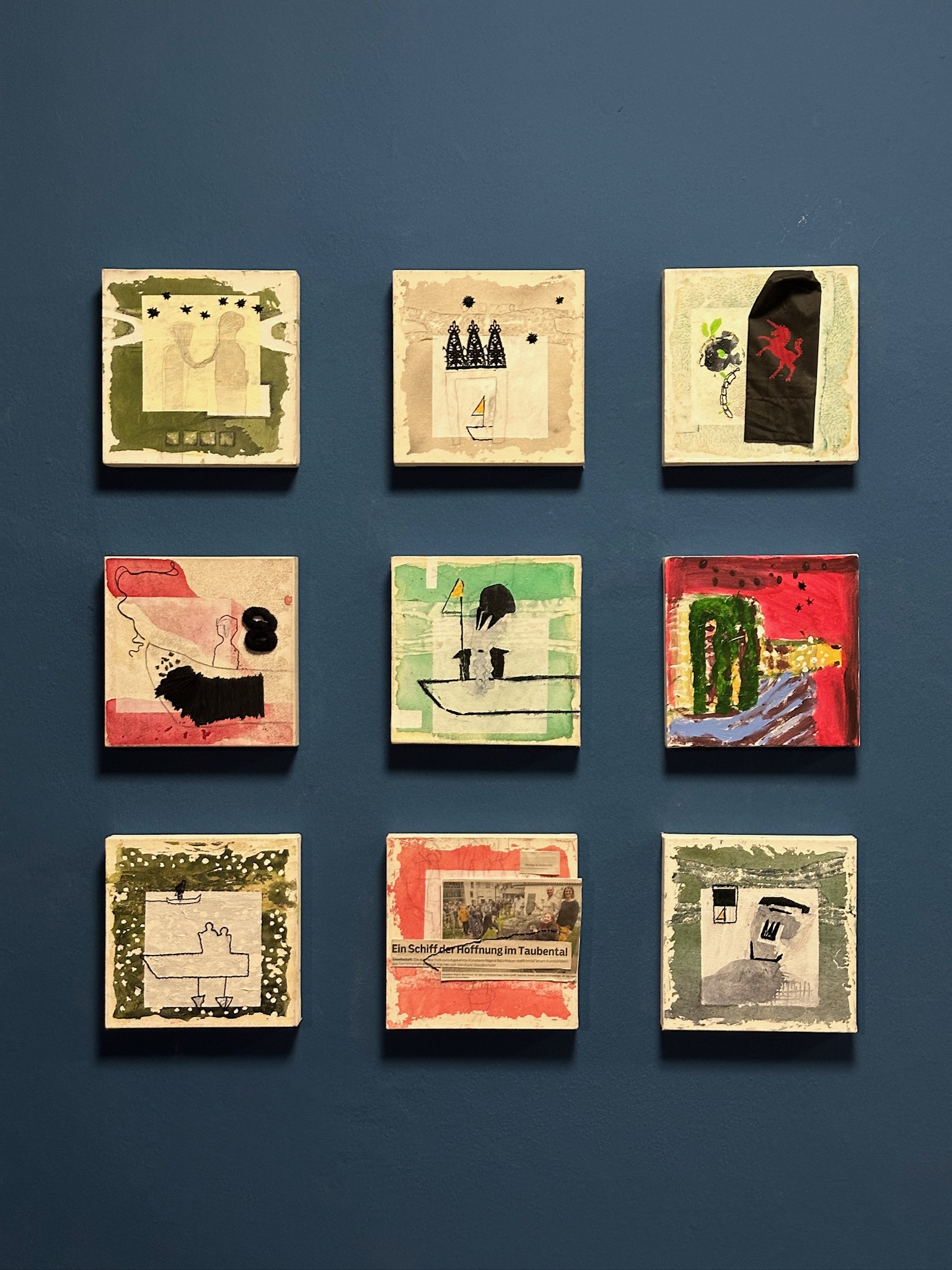 Nach ihrem Studium lebte Regina Baumhauer mehrere Jahrzehnte in New York. Dort begann sie die Serie Open Letters – im buchstäblichen Sinne, da sie als Untergrund zunächst aufgefaltete Briefumschläge verwendete, aber auch im übertragenen, mit Werken, die sich zu gesellschaftspolitischen Themen wie offene Briefe an die Betrachtenden wenden. Jo Stotz und Paula Straus – frühe Absolventinnen der Gmünder Fachhochschule; die Jüdin Straus wurde 1943 in Ausschwitz ermordet – spielen dabei ebenso eine Rolle wie allgemein zwischenmenschliche Vernetzungen.