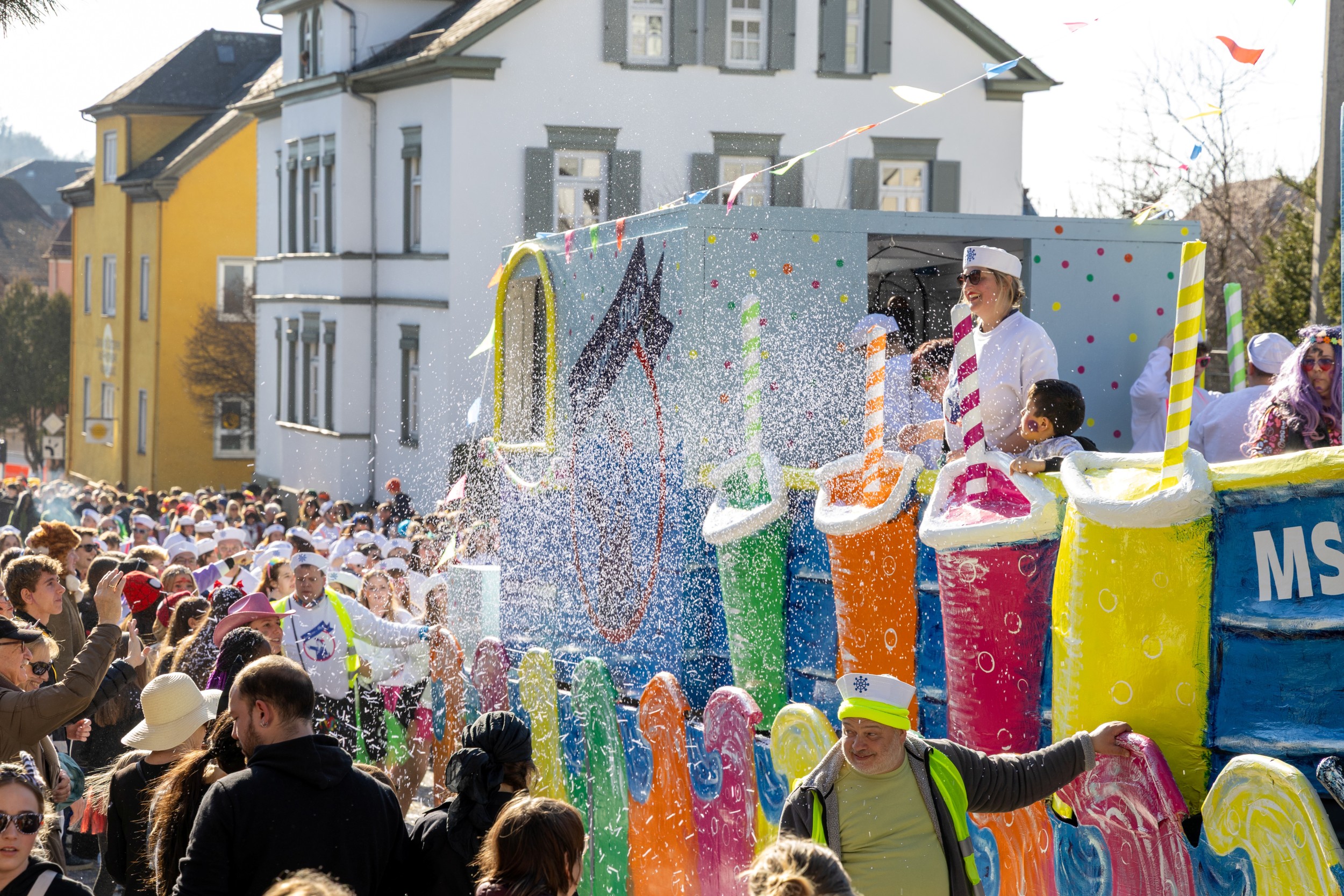Besondere Highlights waren die 58 Hexen- und Maskengruppen, deren fantasievolle und teils furchteinflößende Kostüme für staunende Gesichter sorgten, sowie die 30 Tanzgruppen mit ihren energiegeladenen Darbietungen – darunter Garden und das beliebte Männerballett. Auch 17 kreative Fußgruppen, 8 mitreißende Guggenmusiken und 6 imposante Motivwagen prägten das Bild. Drei Musikgruppen, darunter der Spielmannszug der Feuerwehr Aalen, der Sängerkranz Zimmern und der Fanfarenzug Wäschenbeuren, verliehen dem Umzug seinen charakteristischen Klangteppich.