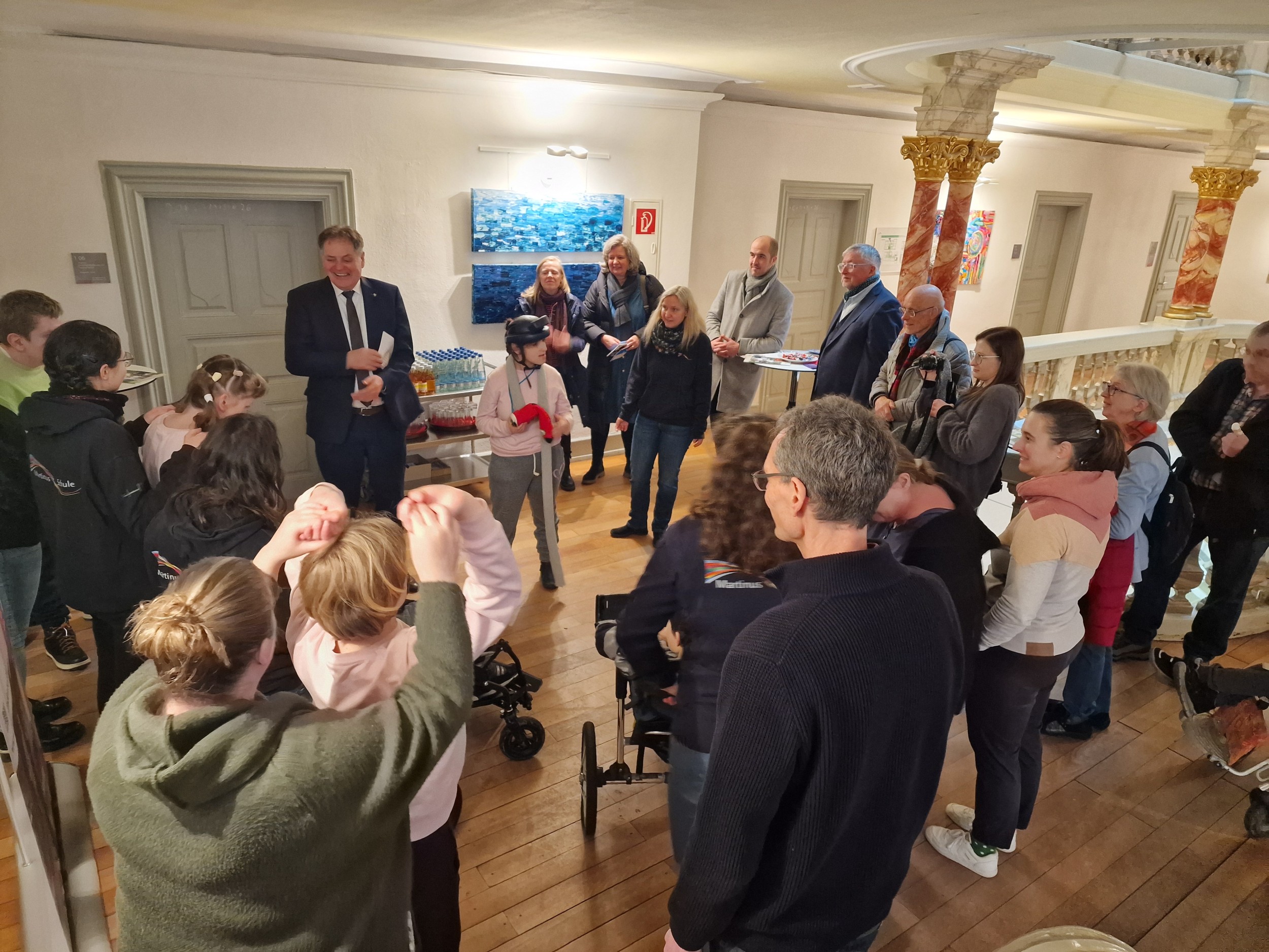 Am Montag, 23. Februar, um 10.30 Uhr wurde im ersten Obergeschoss des Rathaus Schwäbisch Gmünd die Ausstellung „Bunte Leinwände und große Gefühle – Kunstspaß an der Martinus Schule“ feierlich eröffnet. Oberbürgermeister Richard Arnold begrüßte die Schülerinnen und Schüler der Martinus Schule sowie die Lehrerschaft herzlich zur Ausstellungseröffnung und würdigte das kreative Engagement der jungen Künstlerinnen und Künstler.