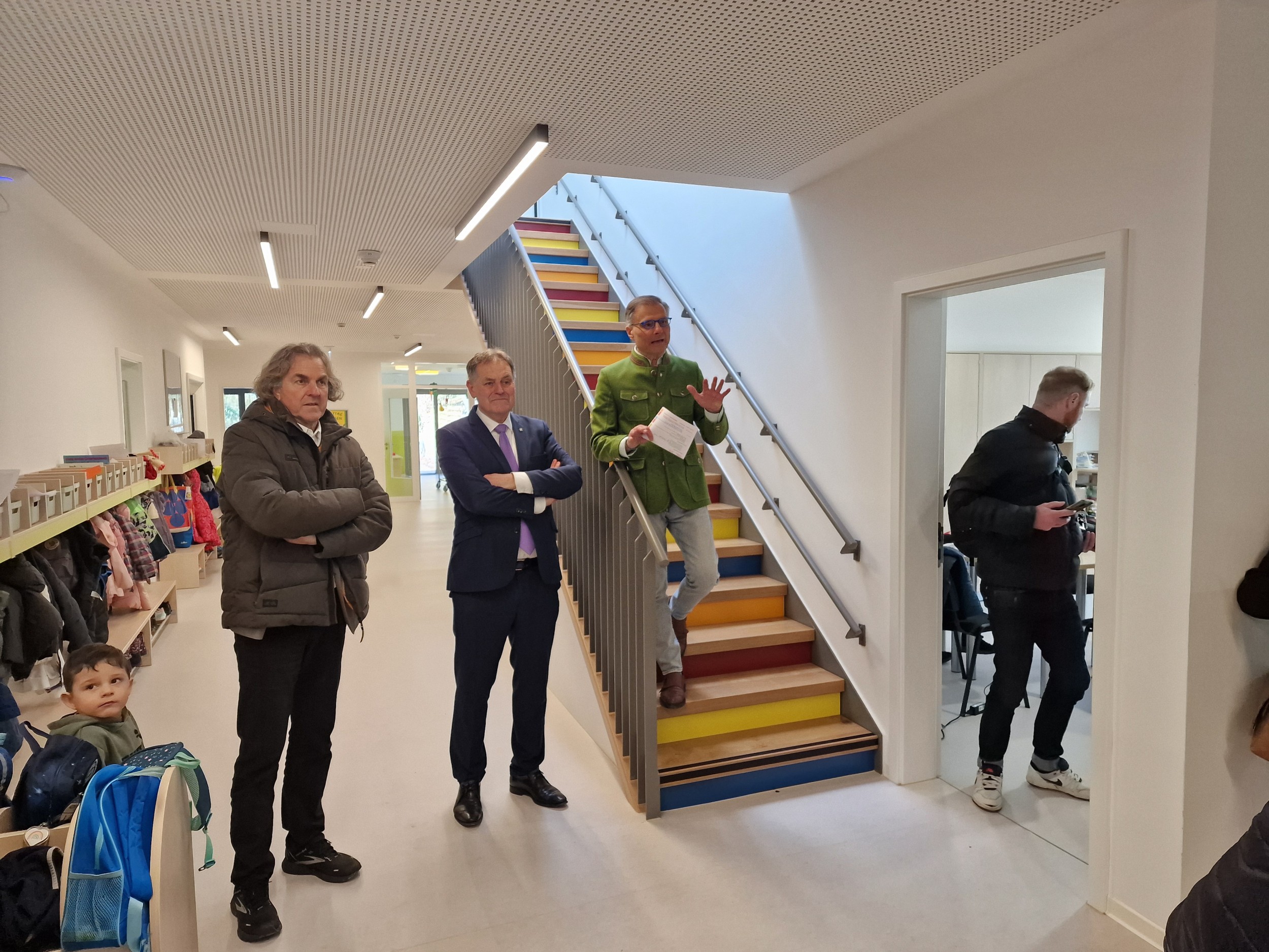 Zu den Anwesenden zählten unter anderem Celestino Piazza, Geschäftsführer der VGW, Mitglieder des Gemeinderats, das Team des Kinderhauses unter der Leitung von Hella Görge, der Elternbeirat, Zeno Bouillon, Leiter des Garten- und Friedhofsamtes, sowie Klaus Arnholdt, Leiter des Amts für Bildung und Sport mit seinem Team. Ebenfalls vertreten war die Stiftung Haus Lindenhof mit der Intensivkooperationsgruppe.