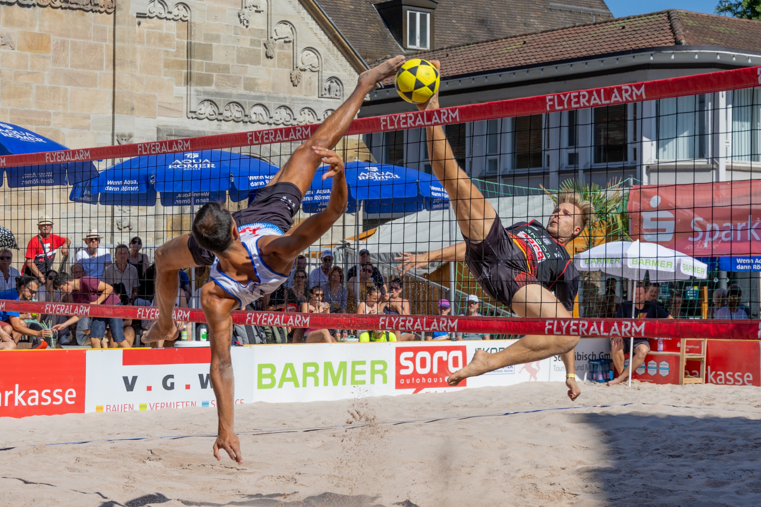 In diesem Jahr fand die Europameisterschaft im Footvolley erneut in Schwäbisch Gmünd statt - und das Mitten im Herzen der Innenstadt. Nicht nur das Wetter war heiß, auch die Spielerinnen und Spieler boten sich heiße Duelle in der Sandarena. Am Sonntag dann das große Finale der Männer, zum ersten Mal mit deutscher Beteiligung. Joel Nißlein und Lukas Kicherer schrieben für den deutschen Footvolley-Sport Geschichte. Spannungsgeladene Stimmung auf dem Johannisplatz - doch leider konnten die Jungs gegen die starken Gegner aus Israel nicht punkten. Israel ging als neuer Europameister aus dem Turnier heraus. Bei den Frauen siegte im Finale die Mannschaft aus Spanien gegen Portugal. Alle Ergebnisse findet ihr unter https://www.footvolley.de/joel-nisslein-und-lukas-kicherer-mit-tollem-zweiten-platz-bei-der-em-2025-in-schwaebisch-gmuend/